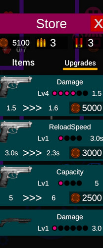A challenging action shooting game with non stopping gameplay and expanding levels system, You'll start at level 1 and the difficulty will rising in each level. The game also contain a store that helps you along the way with upgrading weapons and buy some ammunition or other items.